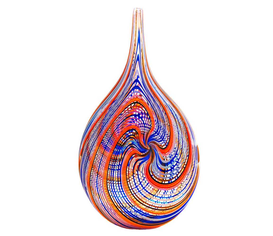 Obtaining this particular shape requires several steps in the furnace with the artist manually using foundry plates to shape the glass repeatedly until the decorations are perfectly configured.