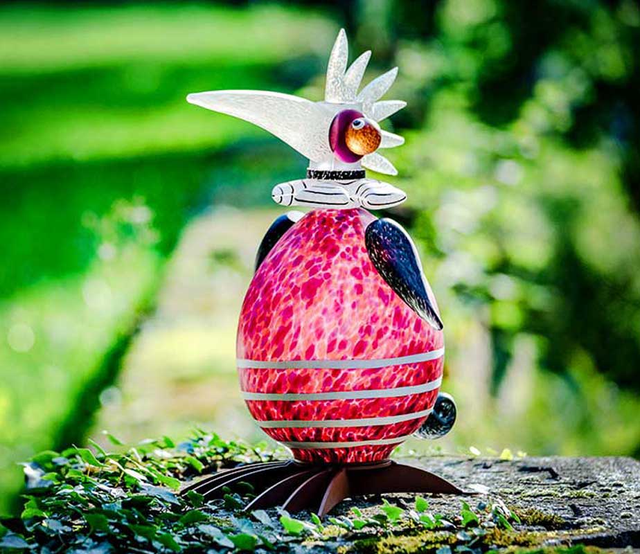 The body of the car is made of glass with a degree of transparency combined with coloured decoration to achieve a striking colour effect.